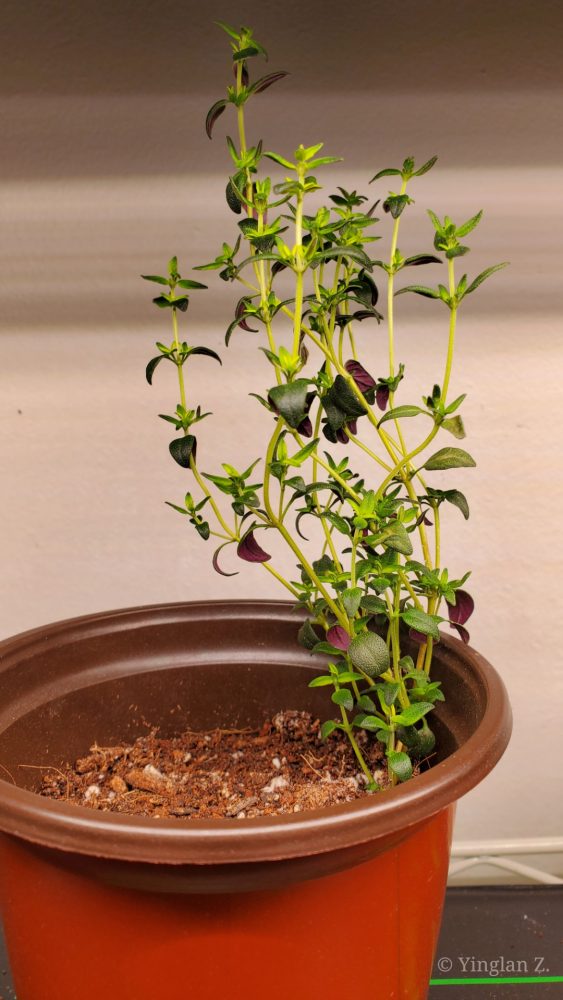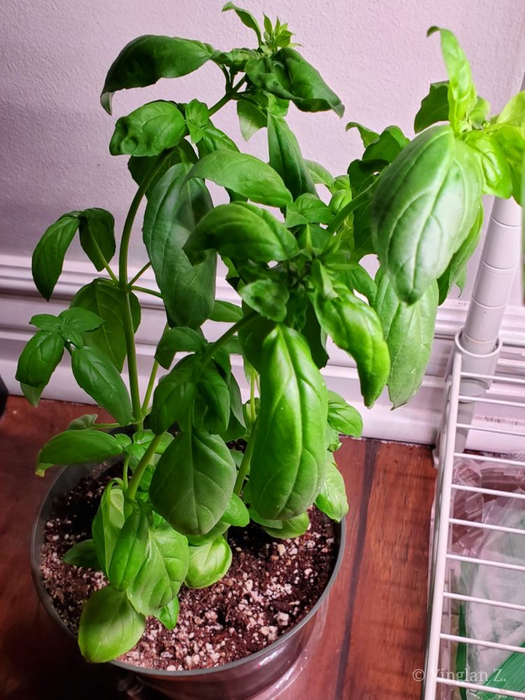 There hasn’t been much noticeable growth for the rosemary but I hear it’s quite slow but the basil skyrocketed since I last showed it to you. If you’ve noticed, it no longer fit on the shelf and I had to move it to a larger pot.