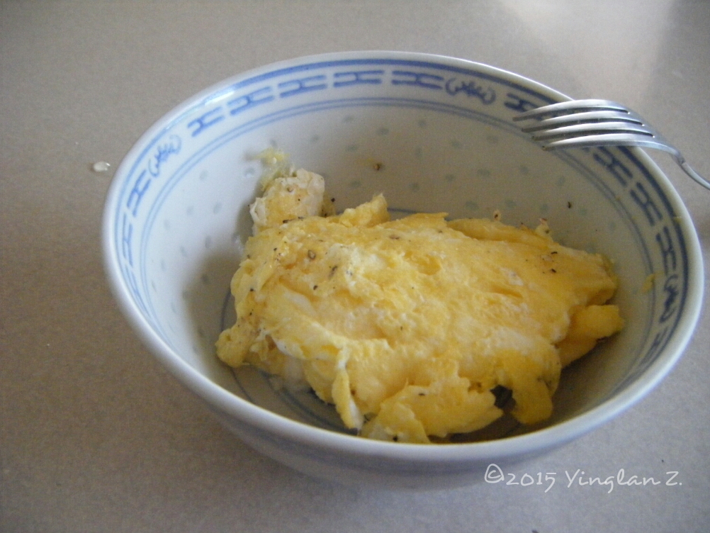 At last, I decided to scramble three eggs just because the eggs are so tiny.