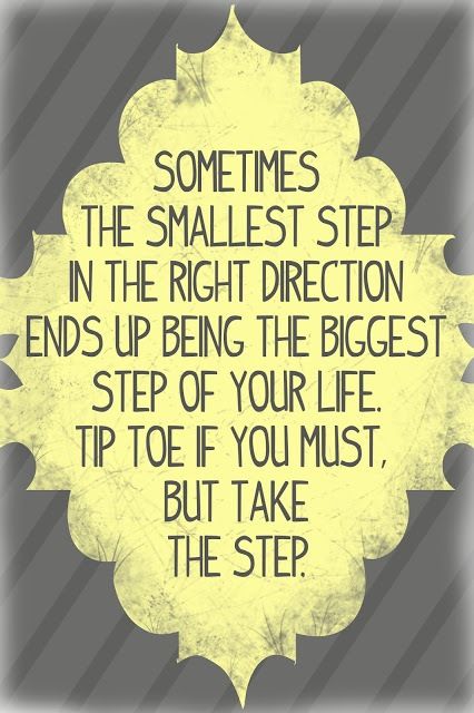 Sometimes the smallest step in the right direction ends up being the biggest step of your life. Tip toe if you must. But take the step.