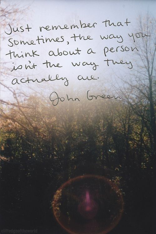 Just remember that sometimes, the way you think about a person isn’t the way they actually are. – John Green