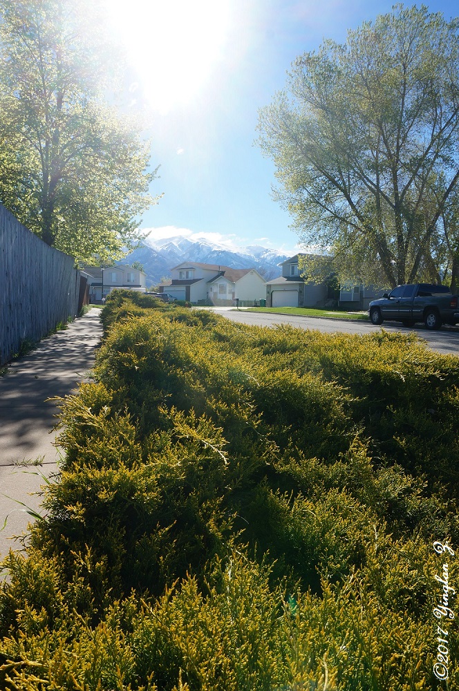 After some teeth-clenching shots which I later had to scrap, I gave up and made my way to the mouth of the neighborhood. Look at that beautiful sky! And that sun! Finally, sunshine. I decided to walk a lap around the block, allowing the wind to finish blowing. You can’t blow forever, Wind!