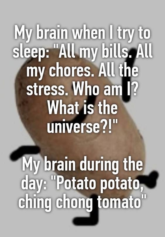 So despite my tendency to fall asleep in about 15-seconds — I empathize deeply. I wish you sweet dreams…potato, potato, tomato… (-_^)