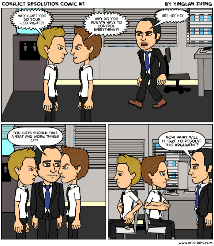 I created this comic for one of my undergrad classes once upon a time and I like this approach to conflict resolution.