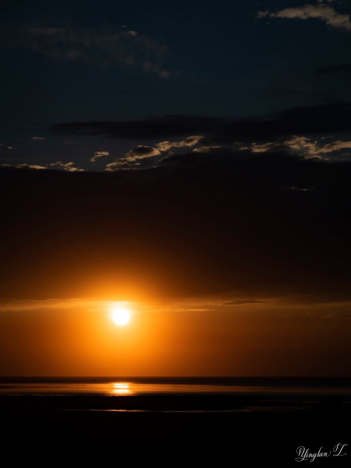 Shortly after shooting the photo of the rainbow, the clouds dissipated and the sky became blue again. We turned our heads in the other direction as the rainbow faded to watch the sun appear from behind the clouds and sink below the horizon.
