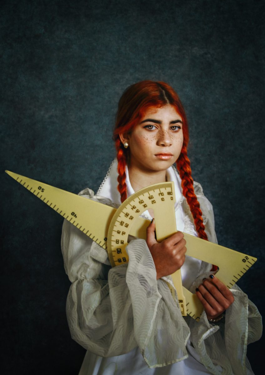 She remembered the previous year when her mother made her wear an 18th Century dress and carry a giant protractor and triangle so everyone would know she’s in the geeky Math Club. She shuttered at the thought.