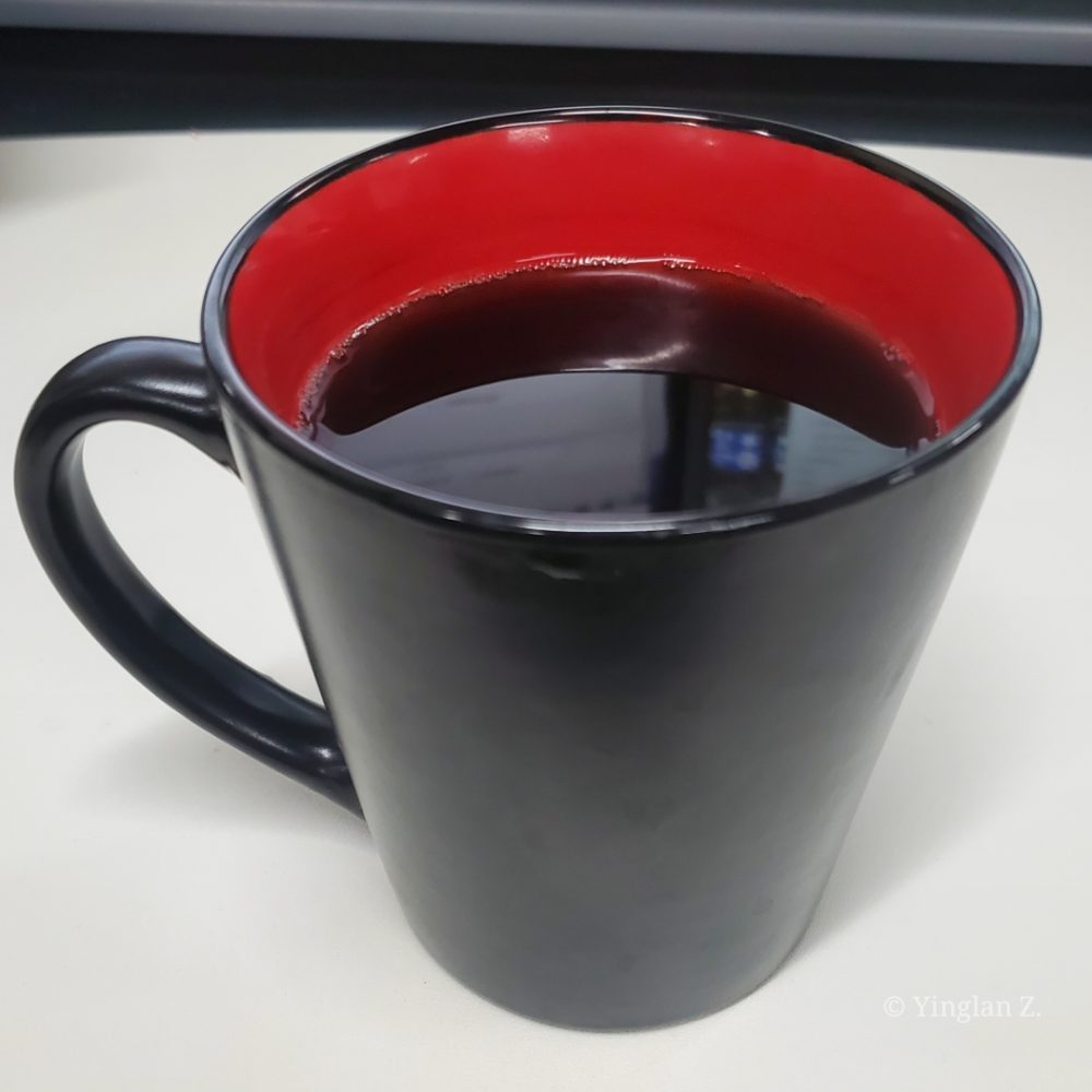 Bottom right: black cup, black coffee
