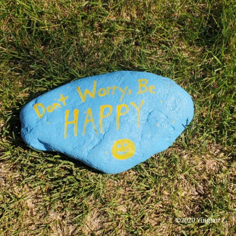 Then one day when I went on my walk, I noticed these colorful rocks by my neighbor’s front yard. I didn’t pay much attention to them at first but when I got to the park, I saw more of them along the loop. This particular rock caught my attention. “Don’t worry, Be happy,” it read.