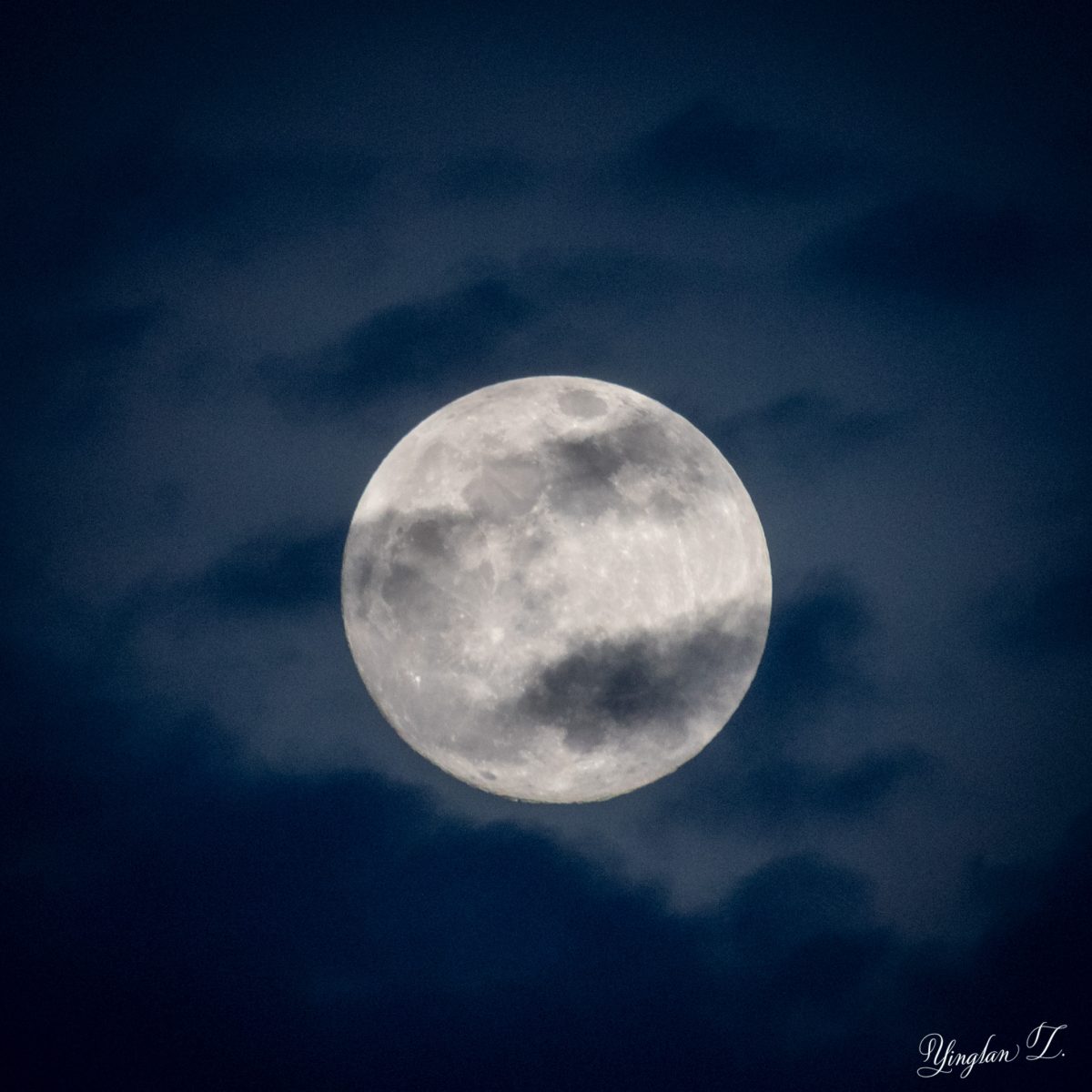 In the end, I decided to not wait. The sky wasn’t getting any lighter and the darker the sky, the harder it is to get a hand-held shot of the moon, since I don’t have the steadiest of hands. I think the clouds made the shot a little unique, especially against the dark blue sky.