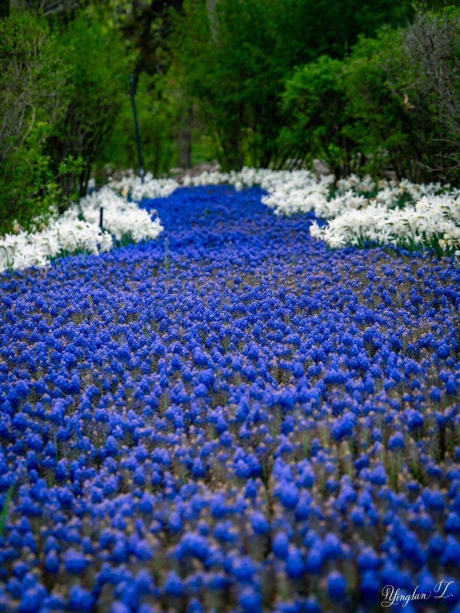 The field of blue flowers, edged by white flowers. It’s a rare sight.