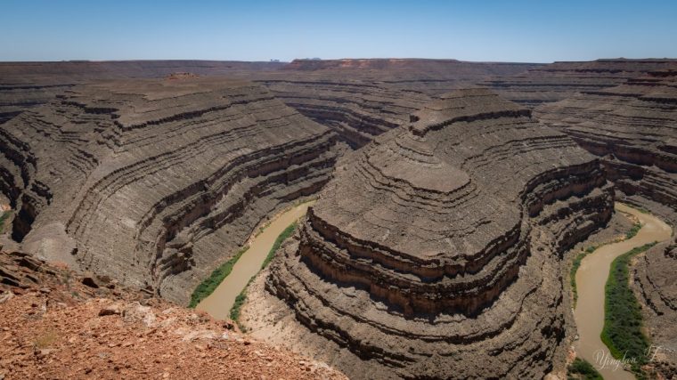 The next and final destination of the trip was Gooseneck State Park, located about 20 minutes from Monument Valley. To be honest, I didn’t see a gooseneck. The gooseneck formation can’t really be seen from this height. I had to see the satellite image to really see the gooseneck. It was a quick destination. According to the internet, most people won’t spend more than 30 minutes at this park. We spent around 15 minutes and that was enough.