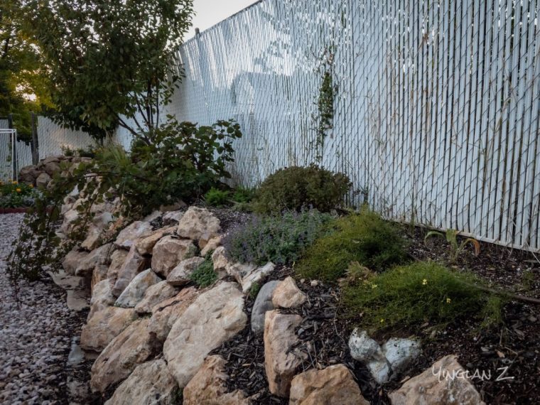 Finally, this is the bed along the back fence. It was my big project in September to remove the mulch, amend the soil, and plant some native perennials. Last week, I fixed the drip irrigation and now, I’m just waiting for the temperature to warm back up just a little bit so I put a thin layer of mulch on top to prevent soil erosion. After a couple of heavy rain storms, the area is looking a lot better. I’m looking forward to see what this improved soil with do next year.