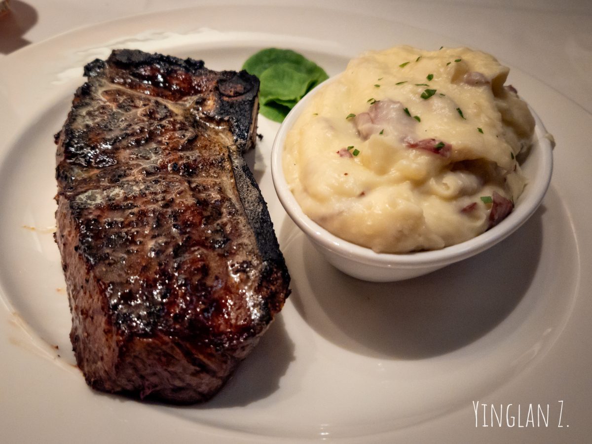 My co-workers ordered some appetizers to share. For starter, I had a salad and for my entree, I had a bone-in dry aged New York strip steak and mashed potatoes. The steak was a 14-ounce beast. I had it cooked medium-rare but when it arrived at the table, it was a little more rare than I wanted, still it was quite tasty. It’s strange that I could finish so much food, considering 6 months ago, I could barely eat anything at all. I think something perhaps shifted in my stomach.