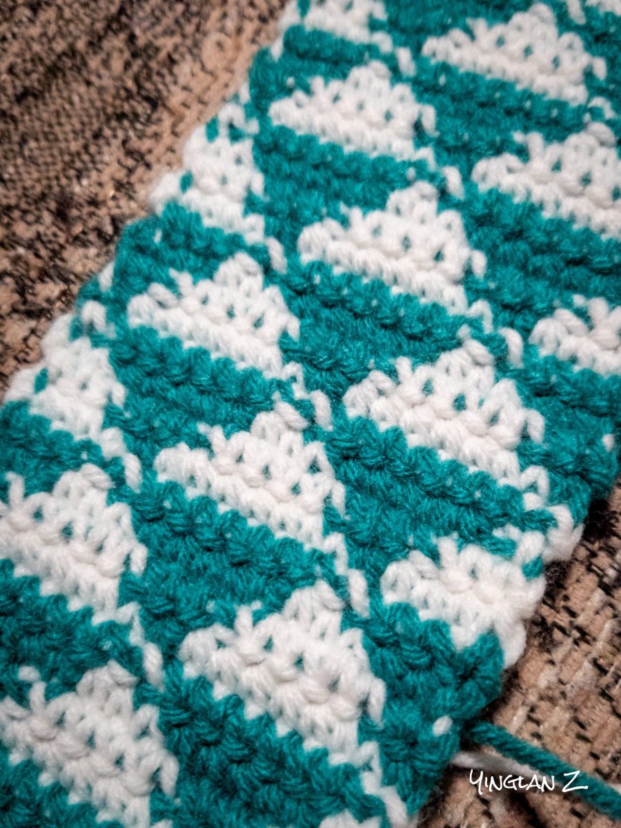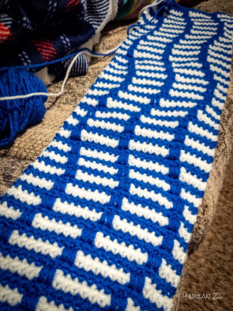 This week, I continued with my crochet. I completed one strip using the mosaic method of crochet. It’s a change from the usual single-color crochet and I liked it. If you’re unfamiliar with mosaic crochet, it’s a method that requires two colors of yarn that alternates every two rows.