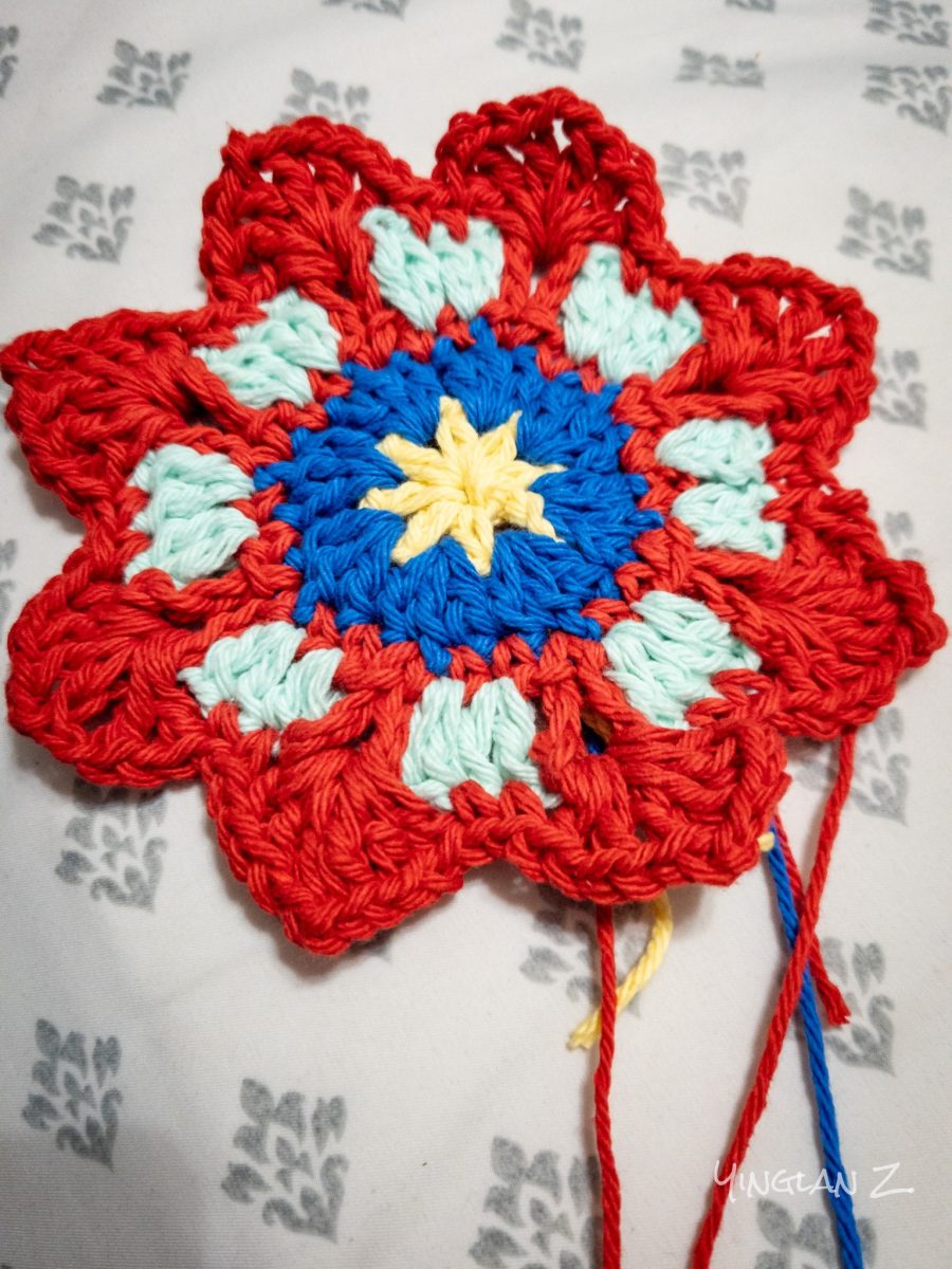 Before I go, I want to share the crochet flower I made this week. It was the only crochet I’ve done this week. I want to hang this in my car but my mom said it’s too big. Didn’t some people used to hang those large fuzzy dice like a decade ago? I don’t believe my flower is bigger than the dice.