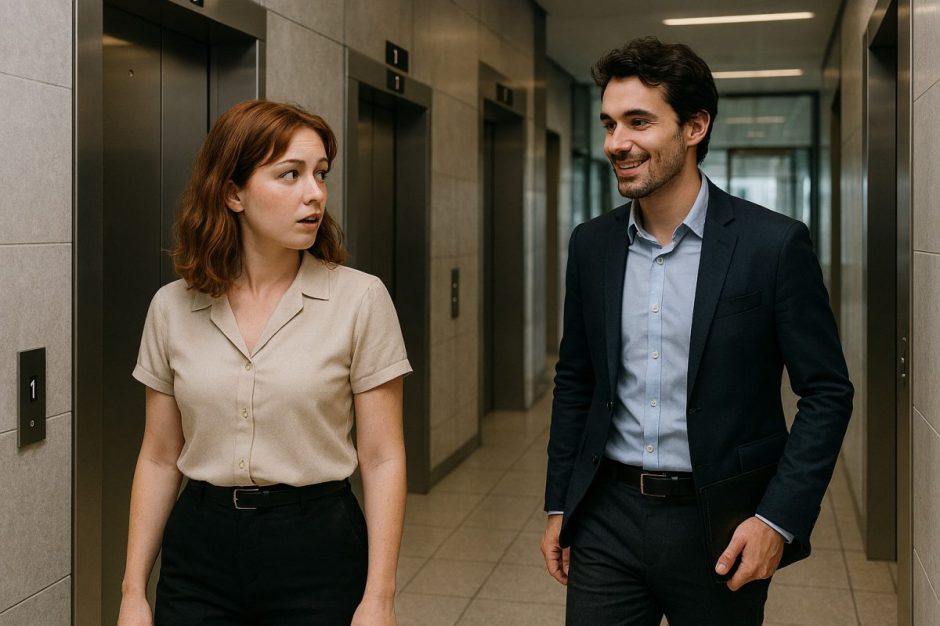 Please give me a sign that this will okay, please, Teri pleaded mentally as she watched the elevator ding from floor to floor until it finally reached the floor to the office. She exited the elevator and was walking toward the office when a voice called behind her, a voice she was definitely not ready to hear, not this early, “Hey Teri,” Teri turned to find her French co-worker, Sasha, had just stepped out of the elevator, “Listen…”