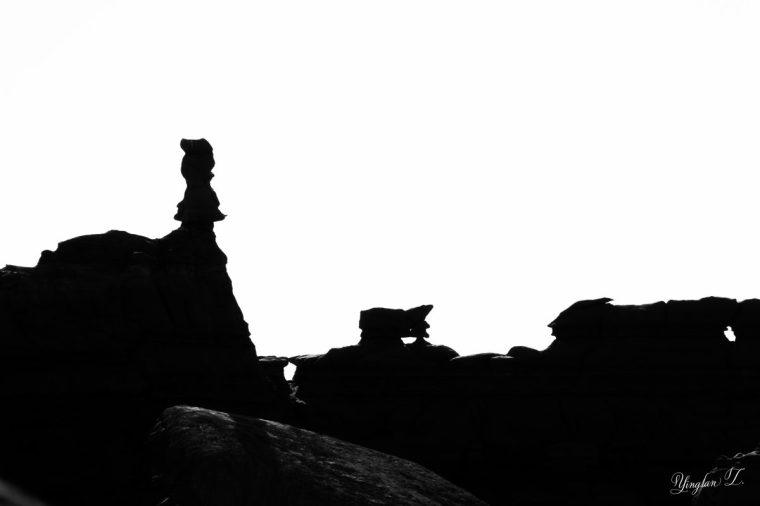 Believe it or not, this is one of my failed photos. I took this at Goblin Valley State Park last summer. I didn’t know it was backlit until I loaded into Lightroom. It was so backlit that no matter what I did, it didn’t work. This challenge has inspired me to have a second look at this picture, turn it into black and white and made me remember why I took this photo in the first place.