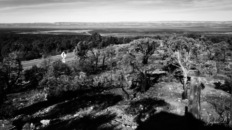 Apologies if this photo seem like a mess. I’ve been trying to figure it out myself and it was probably a snapshot I took at the spur of the moment as I stood at Le Fevre Overlook in Kaibab National Forest looking at the vast expanse of land that, according to a sign at the viewpoint, are multiple national parks and monuments in the distance. I think it makes a fine black and white photo, though, the light really made the tree on the right stand out.