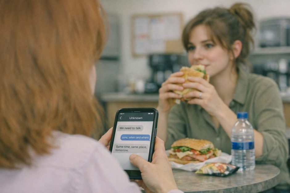 A long moment later, Teri’s phone buzzed, “Same time, same place tomorrow.”