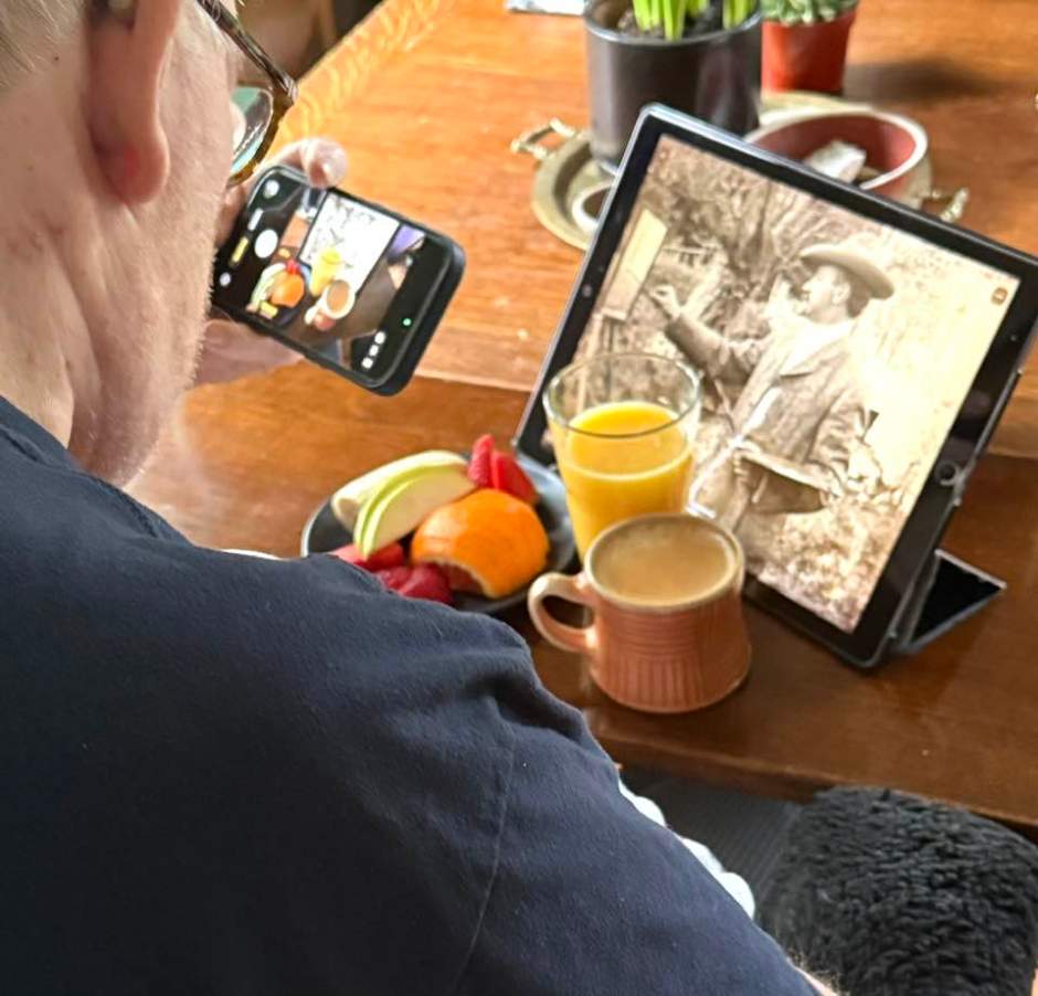 “Taking a picture of my beautiful breakfast, made by my lovely wife.”