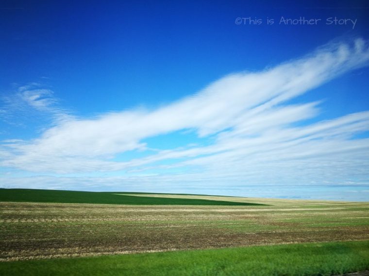 It started out a great drive as you can tell from the above picture. The sky was blue as far as I could see. It had rained hard the night before as I was driving from Waterton Lakes, Canada to Great Falls, Montana. There were some spots where I couldn’t even see. It was a scary 6-hour journey. So seeing the blue skies and sunshine made the drive pleasant.