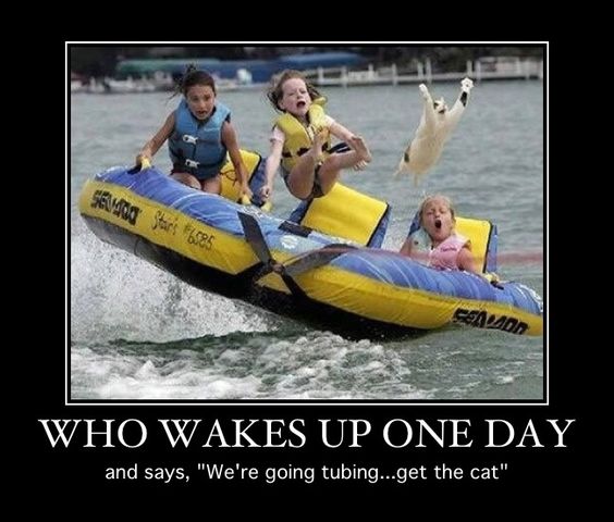 I’m not sure what’s worse about this picture – the cat seems to be enjoying this or the fact there’s not an adult present.